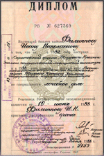 Диплом о высшем медицинсков образовании, завершённом в 1988 году>>